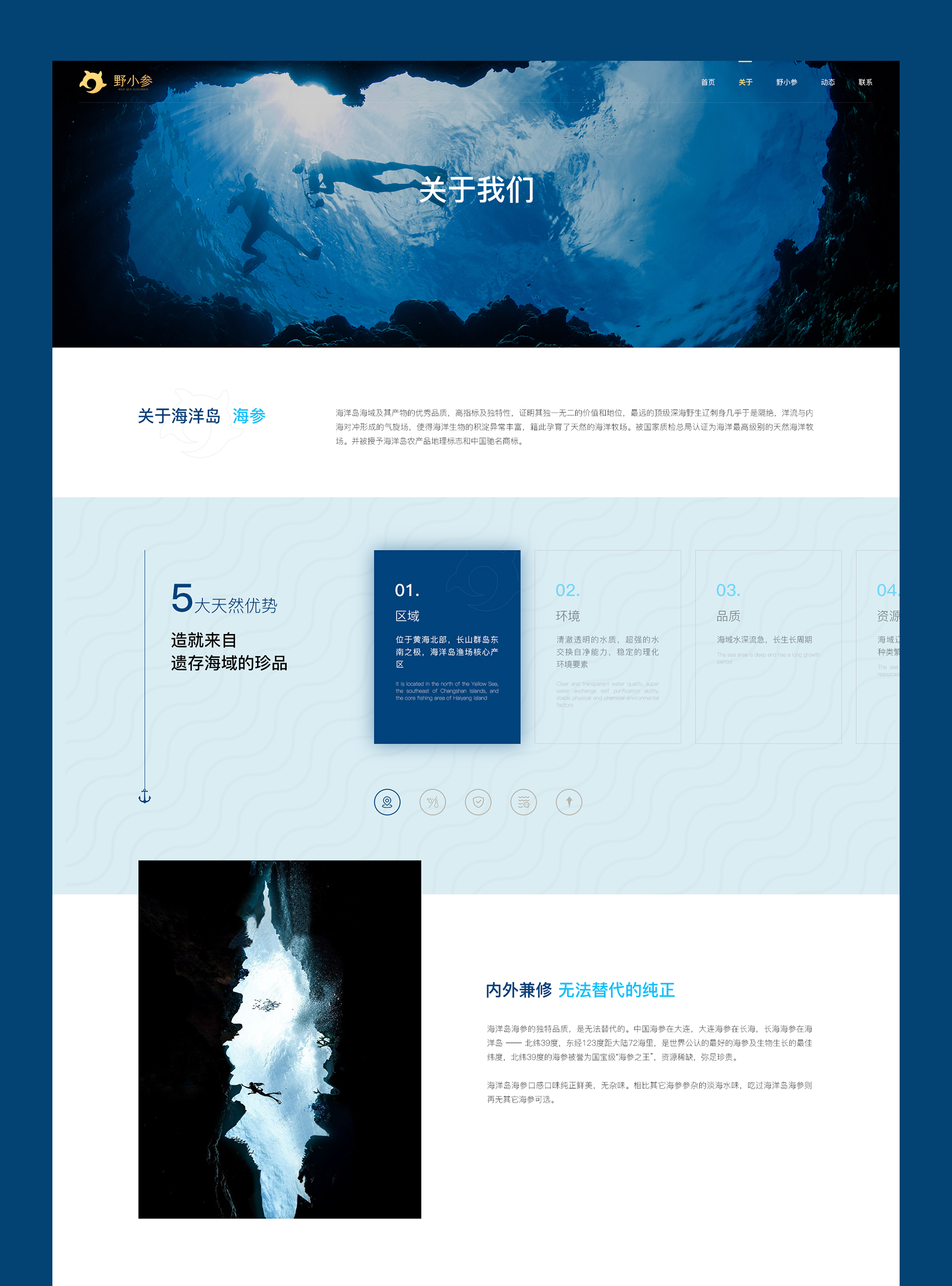 海洋岛海域及其产物的优秀品质,高指标及独特性,证明其独一无二的价值和地位,最远的顶级深海野生辽刺身几乎于是隔绝,洋流与内海对冲形成的气旋场,使得海洋生物的积淀异常丰富,籍此孕育了天然的海洋牧场。被国家质检总局认证为海洋最高级别的天然海洋牧场。并被授予海洋岛农产品地理标志和中国驰名商标。